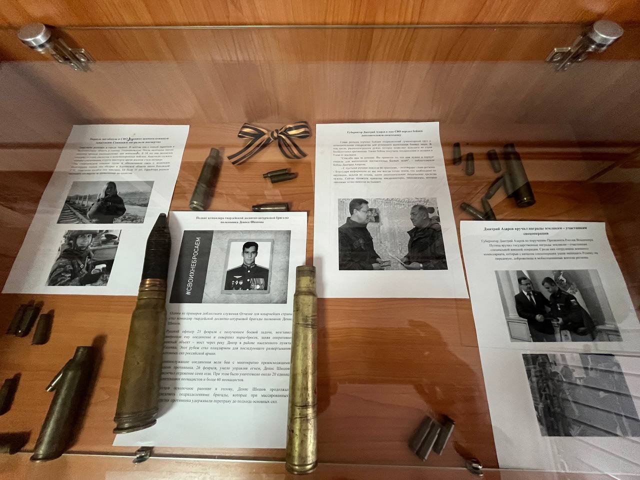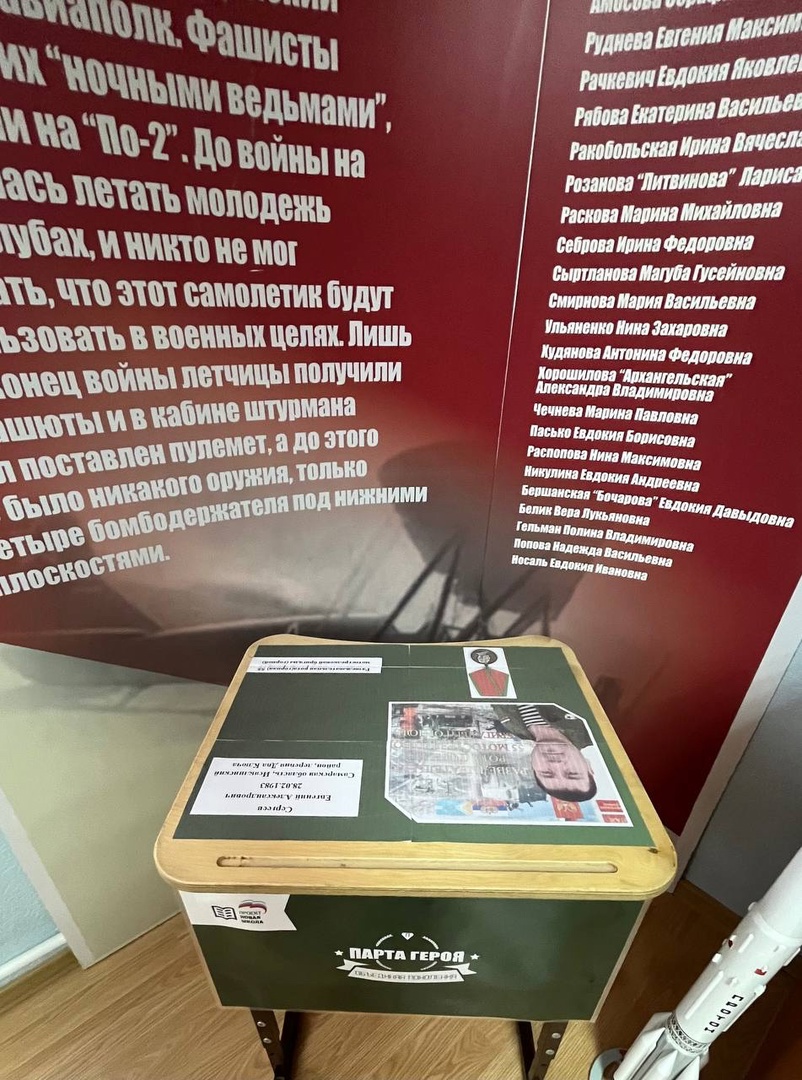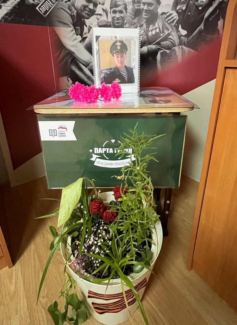 В школьном музее боевой славы обновилась экспозиция посвященная СВО. В музее оформлены "Парты Героя", в честь выпускника школы Панина Александра Михайловича и действующего участника СВО Сергеева Евгения Александровича (отец учащегося нашей школы).